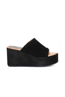 Suede wedge slipper. the insole is in leather. the wedge is 9.5 cm high. footwear that will make you feel comfortable every day. without giving up your style.