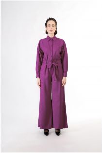 super wide trousers with sash hot pink