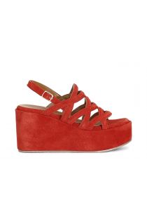 Wedge sandals in suede leather with crosses giving stable support to the foot. the insole is in leather. the wedge is 9.5 cm high. footwear that will make you feel comfortable every day. without giving up your style.