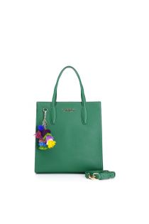 Shopper with removable coloured pendant. bag with adjustable shoulder strap. zip closure.