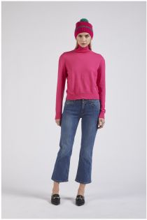 High-necked sweater with comfortable fit and gathers on the shoulders long sleeves. viscose yarn sweater.