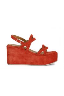 Suede wedge sandals with two bands. the insole is in leather. the wedge is 9.5 cm high. footwear that will make you feel comfortable every day. without giving up your style.