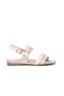 Fisherman model two-material leather and laminated sandals with band. Comfortable animal print fussbett.