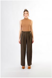 Wide straight leg trousers with pleats on the front and slightly high waist made of bi-stretch fabric. waist with belt loops and zip and button closure. the ideal garment for creating sporty chic looks thanks to the combination of comfort and elegance which makes the garment always fashionable.