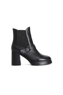 Women's nappa ankle boot with side elastic bands and buckle. 80 mm heel 20 mm platform. the insole is in leather. comfort and elegance at the same time and a unique character suitable for every outfit.