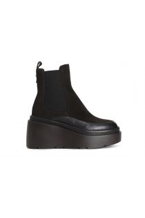 Women's suede ankle boot with side elastics. 70 mm heel and 30 mm platform. the insole is in leather.