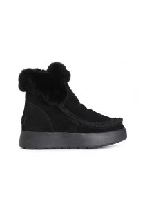 Women's suede ankle boot with moccasin edge and ornamental cross stitching. the lining and insole are made of synthetic fur. warm and very comfortable shoe. ideal for cold winter days.