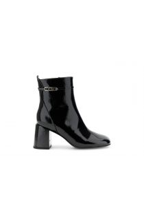 Women's naplak leather ankle boot with personalized accessory. internal zipper. 80 mm high banded heel. the insole is in leather. ideal in combination with multiple looks from morning to evening.