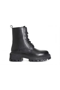 Women's laced leather ankle boot. 55mm high heel. the insole is in leather.