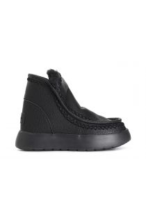 Women's ankle boot with raised sole. leather upper and synthetic fur lining.