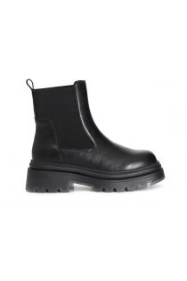 Women's leather ankle boot with side elastic bands to make it easier to put on. 55mm high heel. the insole is in leather.