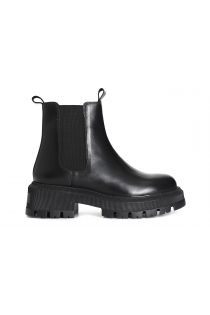 Women's leather ankle boot with side elastic bands to make it easier to put on. 55mm high heel. the insole is in leather.