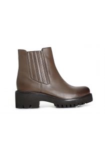 Women's leather ankle boot with covered elastic. 50mm high heel. the insole is in leather.