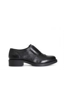 Women's leather oxford shoes with decorative stitching and rhinestones. the heel is 30 mm high.
