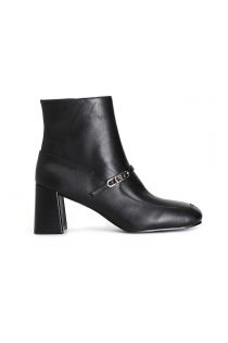 Women's nappa ankle boot with personalized buckle. zipper on the inside. comfortable shoe with an innovative and refined style as well as very feminine. the toe and 65mm heel are squared. the insole is in leather.