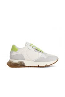 White nylon and suede women’s running shoes. coloured top line and laces.