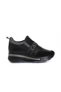 Women's leather slip-on enriched with glitter details and a pretty band with a rhinestone cafènoir logo. two-tone raised sole with embossed logo.