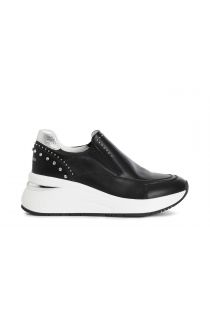 Women's slip-on in leather covered with studs and rhinestones. internal footbed. a practical and functional choice for those seeking comfort without sacrificing style.