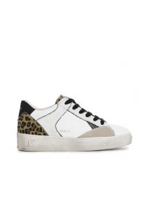 women's sneakers in leather and suede with metallic effect inserts spotted white