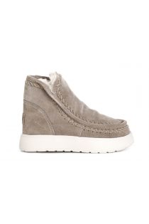 Women's ankle boot with raised sole. suede upper and synthetic fur lining.