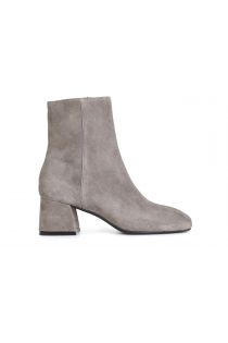 Women's suede ankle boot with a rounded shape. zipper on the inside of the shoe. the insole is in leather. thick heel 60 mm high.