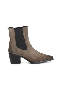 Suede ankle boot with side elastics. zipper on the inside. 55 mm high heel. the insole is in leather. a texan style shoe with a bold character that will guarantee an extra edge to your looks.