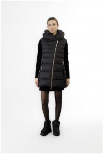 Sleeveless down jacket with a flared line and enveloping collar made of matt nylon. double slider zip closure. ideal item for casual everyday outfits.